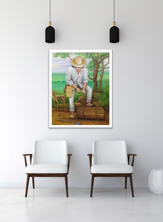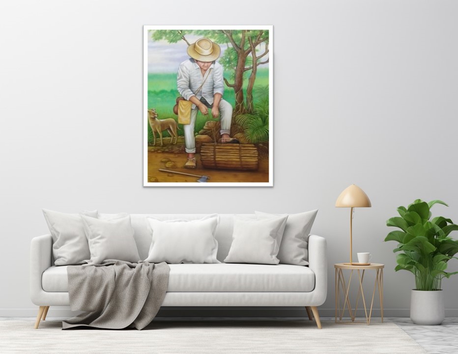 El cuadro transmite la esencia del trabajo duro y la conexión íntima entre el hombre y su entorno natural. Es una pieza que captura un momento de esfuerzo y dedicación, ideal para quienes aprecian las representaciones de la vida cotidiana en contacto con la naturaleza.